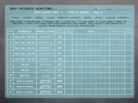Once 7-10 letters words are mastered, advance to Steps 12-15 on Form B. Form B tracks Letter Size, Spacing and copying skills of short phrases, sentences and paragraphs. Score for Spaghetti and Meatball Spacing, as well as Size. Note whether student used a Direct Line copy, Near Point, Mid Point or Far Point, and if the sample was lined, unlined or not present.